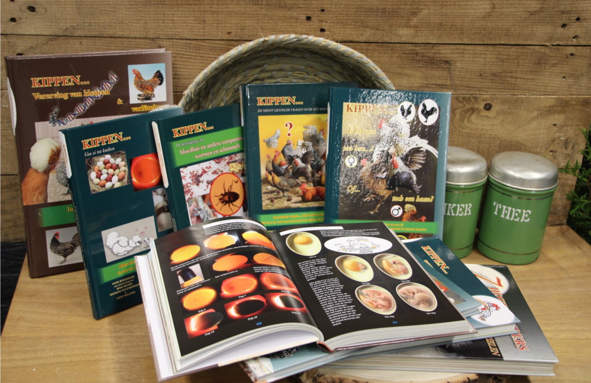 De Boeken Kippen... Ziekten & Aandoeningen Kippen... Kippenvaria & Kippenmania Kippen... Vererving van kleuren & Variëteiten Kippen... Is het nou een hen...? Of... toch een haan ?? Kippen... De meest gestelde vragen over het houden van kippen Kippen... De bestrijding van bloedluis en andere ectoparasieten, wormen en schimmels Kippen... Van ei tot kuiken Zijdehoenders & zijdehoenkrielen Kippen & tierelantijnen